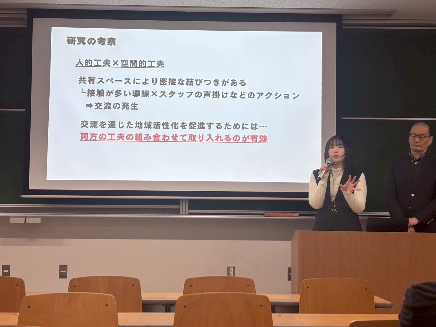 国際地域学部の4年生1名が、3月7日に金沢大学で開催された「北陸地域政策研究フォーラム」の自由論題にて、「ゲストハウスの交流が導く地域活性化に関する一考察 ~空間的工夫と人的工夫に着目して~ 」というテーマで発表しました。当該学生が同テーマで執筆した卒業論文をもとにしたものです。